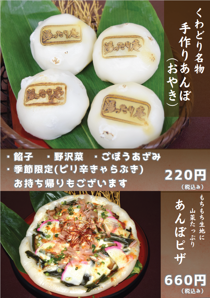 ぜひ「くわどり湯ったり村」、レストラン「森のキッチン 湯ったり庵」へご来館いただき、もちもちのあんぼをご堪能ください!